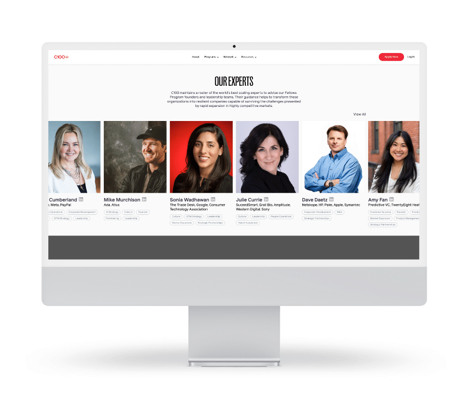 C100 partnered with me to completely overhaul their website. We migrated the site from Webflow to WordPress, giving their team a more intuitive and flexible content management experience. We redesigned the site with a modern, clean aesthetic, improved UX, and clear messaging tailored to tech founders. With a new structure and stronger CTAs, the site became a powerful tool for lead generation and community engagement.